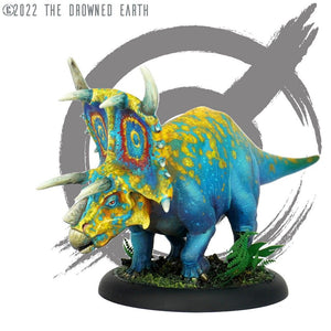 The magnificent Ceratops! This mighty figure can be used in The Drowned Earth miniatures game or as an alternate boss in several Ulaya Chronicles scenarios (not required to play UC).