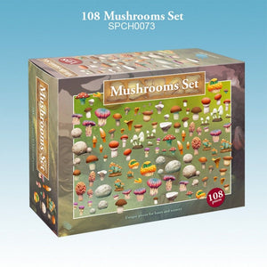 Set contains 108 high-quality resin Mushrooms. There are 17 different types and each type is in 3 different sizes, with one exception - Tathea Mushrooms, which are in 6 different sizes. All mushrooms are doubled. Requires assembling, cleaning and painting.