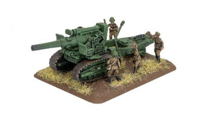 A 203mm Soviet high-power heavy howitzer. During the Second World War, it was under the command of the Stavka's strategic reserve. It was nicknamed "Stalin's sledgehammer" by German soldiers. These guns were used with success against Finnish pillboxes at the Mannerheim Line, heavy German fortifications and in urban combat for destroying protected buildings and bunkers. These guns were used until the end of the war in the Battle of Berlin, during which the Red Army used them to smash German fortifications at point blank range with their heavy 203mm shells. In the spring of 1944, a KV-1S tank chassis was used to create a self-propelled variant, the S-51. The heavy recoil from the muzzle blast threw the crew off their seats and damaged the transmission, and so it was cancelled