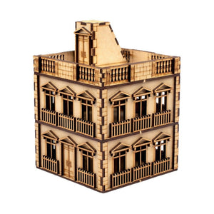 The 25mm City Rowhouse Terrace is a fantastic, multi-purpose piece of terrain! Not only do you get multiple floors to garrison and fight inside, but you also get a full rooftop terrace to snipe enemies from! Post a rocket launcher up there and wait for the tanks to roll down the street.