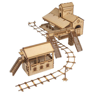 The 25mm City Train Station is big enough for a pretty dedicated corner of your board! With a big main station building (with a removable roof of course) and plenty of track, it really does conjure the image of a city centre train depot.