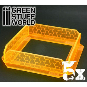 Energy walls may be glued to the bases or just use them alone. Holo Walls can be grouped to form other much larger walls, creating sections. In addition, the corners of the bases have 45º angles, and thus enclose any space in your playfields.