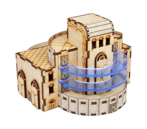 Featuring acrylic walkways and multiple levels, this building is the perfect for a heavily contested objective. With an absurd amount of roof space and access points there's plenty of room for infantry bases all over this building.