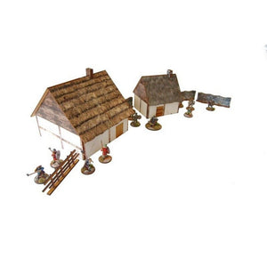 In this savings package, you will find a Viking hut with a removable thatched roof, a Viking hut with a stable, and a set of 3 walls. All fully prepainted, ready to assemble and use. Perfect for historical or Fantasy games, such as Saga, Age Of Sigmar, Kings Of War, etc.