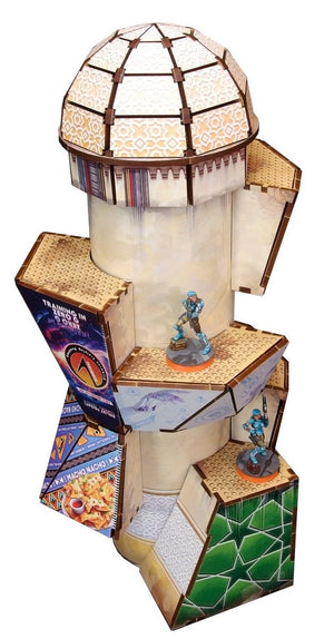 The Al Medinat Terraformation Tower (1) PREPAINTED (sand) PREORDER is a set of 8 HDF sections designed to be attached to a 3" diameter Tube from your favorite chips (available separately at your convenience store), and a set of printed stickers to cover the tube sides. Dedicated for Infinity the Game by Corvus Belli.