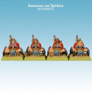 The set contains 4 two-piece high-quality resin miniatures of Amazons on Spiders (4 riders and 4 mounts), and four 25 mm square plastic bases. Require assembly, cleaning and painting. Scenic bases not included. The miniatures are dedicated for the Gaeldor army in Argatoria Wargame.