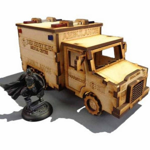 The Ambulance is made from 3mm MDF, easy to put together and looks great on the tabletop. It is a great piece of scenery to use with the Batman Miniatures Game. We advise using PVA glue to build it for the best results.