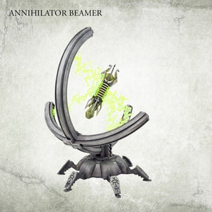 This set contains parts to assemble one Annihilator Beamer, an apex of immortal legions technology. The green lighting powers the crystals, making it ready to smite titans and spaceships. If assembled properly, the cannon can be rotated.