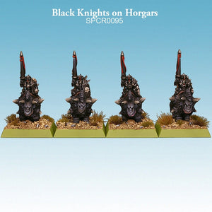The set contains 4 multi-part high-quality resin miniatures of Black Knights on Horgars
