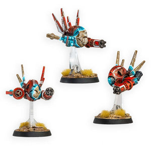 Caste Enclaves Blackfish Drones are equipped with highly-advanced camouflage projectors, which allow them to operate alone in the field. Besides Drones themselves, this set also includes three Covert Gatlings (enough for all Drones), one Magma Gun (for one Drone to swap its weapon for it), and four Upgrade Systems (available for every Drone), allowing you to equip all Drones as desired.