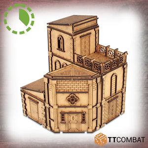This kit is made from 3mm MDF and has been designed for Carnevale, using multiple storeys to climb and jump, and roofs at easy angles so that miniatures will not fall off when darting across the Venetian skyline. It is a great piece of scenery to use with other 28-32mm games.