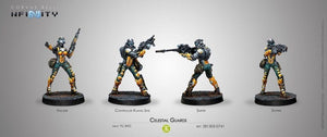 This box includes four miniatures: one Celestial Guard with MULTI Sniper, one Celestial Guard with Spitfire, one Celestial Guard with Kuang Shi Control Device and one Celestial Guard Hacker. This box is a terrific way to complement a Fireteam of Celestial Guards in the Imperial Service Yu Jing Sectorial Army.