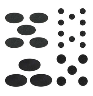 Great if you need to replace damaged or unwanted bases on your models. This pack provides loads of spare round and oval bases to keep your models standing proud.