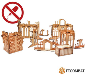 Our woodgineers in the TTCombat offices have come up with something truly extraordinary in the City Qudratum Ruins. For the first time you can completely deck out a gaming table with incredible looking TTCombat scenery that you don't even have to glue together! That's right, this massive kit can be slotted together and unpacked again for storage!