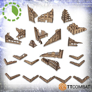 City Ruins are made from 3mm MDF. Designed for Dropzone Commander, they'll work perfectly well in any other 10mm sci-fi wargame.