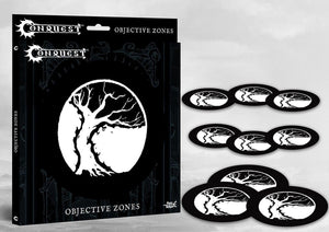 This is a set of 9 Objective Zones in Black with the White Nords Faction Logo that brings more Conquest look and feel to your table. A new and unique material that won't slip on the table, but will allow your models to easily slide over, off and around, these are ultra thin made of .5mm polypropylene. Great for any wargame play. Three 9" Zones and Six 6" Zones packaged together.