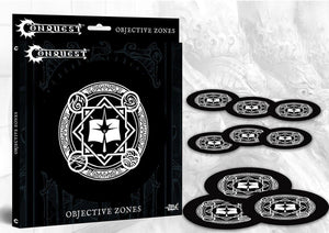 This is a set of 9 Objective Zones in Black with the White Sorcerer Kings Faction Logo that brings more Conquest look and feel to your table. A new and unique material that won't slip on the table, but will allow your models to easily slide over, off and around, these are ultra thin made of .5mm polypropylene. Great for any wargame play. Three 9" Zones and Six 6" Zones packaged together.