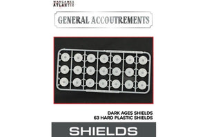 hard plastic shields are an easy way to equip your warband with a uniform look. Each shield measures 14mm round and features a flat surface around the central boss. The backs have wood grain design, a central support grip, and a hole for the model’s hand. These are also perfect to line the sides of your Norse ship!