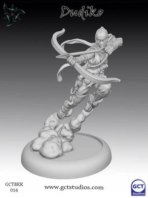 A proud sister of the House of the Long Shadow, Dudiko is an exemplar of the virtues of her house. She is able to hold her own in melee however she is more inclined to retreat in a cloud of smoke, leaving her opponents vulnerable and wary of where she will attack from next. Her smoke bombs can be useful for all in her company and she was not too proud to learn their use from those in the House of the North Star.