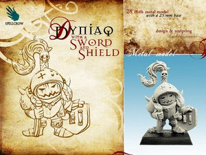 Suitable for use with a wide range of miniatures between 28mm and 32mm, this resin Dyniaq with a Sword and Shield from Spellcrow is brimming with character, and are sure to give your boys the edge!