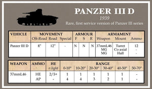 This is a set of datacards for all early war German vehicles (movement, armour, armament etc). They have been cut to fit into most useful tabletop playing aids, such as card holders.
