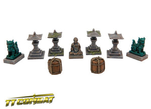 The Eastern Accessories 2 are made from resin. They are a great addition to your tabletop.