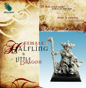 Suitable for use with a wide range of miniatures between 28mm and 32mm, this resin Female Halfling and Little Dragon from Spellcrow is brimming with character, and are sure to give your boys the edge!