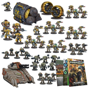 This fantastic starter set boasts over 55 highly detailed Mantic miniatures, including vehicles, rules and force lists, a quick start guide, dice and tokens. This box is a perfect introduction to the Warpath Universe and the immersive, tactical and action-packed tabletop game of Firefight.