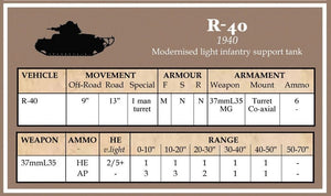 This is a set of datacards for all the French, Polish, Hungarian and Romanian vehicles (movement, armour, armament etc). They have been cut to fit into most useful tabletop playing aids, such as card holders.