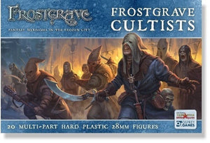 This box set of hard plastic figures allows you to build 20 different Cultists to play in the game Frostgrave. Mad fanatics that have given their soul to some evil demon or necromancer. With multiple weapon, heads and equipment options, no two cultist warbands should ever be the same.