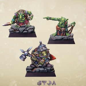 This set contains 3 resin miniatures of Goblins. Dedicated for Umbra Turris Skirmish Game. The miniatures are compatible with other 28 mm scale miniature wargames and tabletop RPGs.