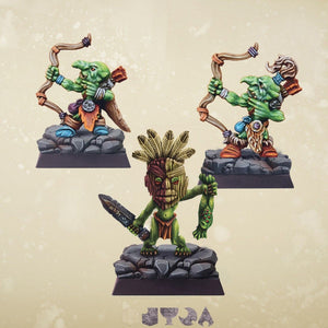 This set contains 3 resin miniatures of Goblins. Dedicated for Umbra Turris Skirmish Game. The miniatures are compatible with other 28 mm scale miniature wargames and tabletop RPGs.