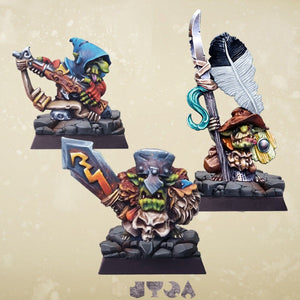 This set contains 3 resin miniatures of Goblins. Dedicated for Umbra Turris Skirmish Game. The miniatures are compatible with other 28 mm scale miniature wargames and tabletop RPGs.