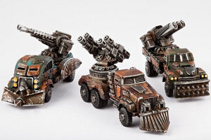 Gun wagons are usually armed with conventional rapid fire cannons mounted for the anti-air role which offer reasonable rate of fire, acceptable range and excellent reliability. Such weapons are plentiful to most Resistance groups as there are usually more surplus military weapons than people to operate them.