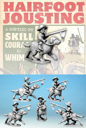 Hairfoot Jousting is a fast-paced tabletop miniatures game where you lead teams of halfling "Hairfoots" mounted on all sorts of unruly creatures into jousting tournaments. Forget gallant steeds - these mounts have their own minds!