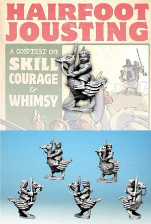 Hairfoot Jousting is a fast-paced tabletop miniatures game where you lead teams of halfling "Hairfoots" mounted on all sorts of unruly creatures into jousting tournaments. Forget gallant steeds - these mounts have their own minds!