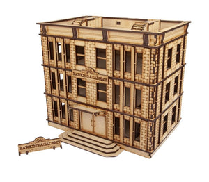 This kit has a removable roof section for easy access and at approximately 21.5cm tall it's perfect for 28-32mm scale gaming, whether fighting in a modern day setting or in a post-apocalyptic future. Made from 3mm MDF, it's easy to put together and look greats on the tabletop.