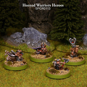 Horned Warriors Heroes are 4 one-piece high-quality resin miniatures which come with four 25 mm round plastic bases. Require assembly, cleaning and painting.