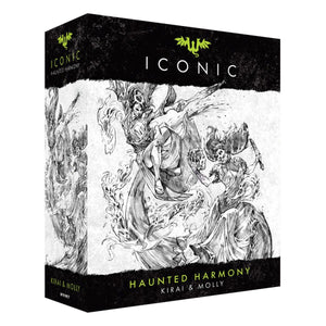Haunted Harmony features Molly Squidpiddge and Kirai Ankoku during their fight at the Gray Lord. This unlikely duo is represented in their best form: Kirai wielding her wicked shears with a determined stare, and Molly delighting in removing one more troublemaker from Malifaux.