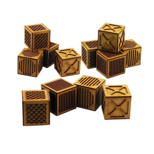 Contents of these frames may be used to make 12 Supply Crates Instruction is fitted to give guidelines and tips on how to assemble the product. Supplied unassembled and unpainted. Designed for 28mm heroic scale. Dimensions: Height 3.5 cm Width 3.5 cm Depth 3.5 cm.