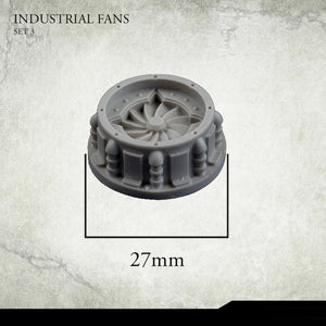 This set contains 5 high-quality resin Industrial Fans that can be used to decorate miniatures, bases or scenery. Designed to fit 28mm heroic scale. Each is approximately 27mm at widest point and 9mm deep.