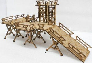 This pack contains a bundle of industrial walkways, ramps and platforms that allow you to create a sci-fi industrial zone. Whether your troops spend the game diving from cover to cover, or you are looking for a home for an opportune sniper - the modular nature of this kit allows for a variety of uses. This kit is made from 2.5mm MDF and is supplied unassembled.