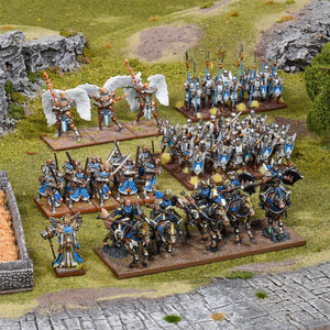 The pious warriors of Basilea march to war with the power of the gods at their backs. Angelic Elohi soar high above the battlefield, well-drilled men-at-arms march in tight formation, while the courageous warrior-monks of the Paladins charge forth on foot and horseback to smite the wicked.