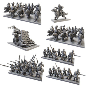 The Halflings have split from the League of Rhordia. While relations have been rebuilt, the Shirefolk are now responsible for their own defence and have organised their army under the expert eye of Aeron Cadwallader, their greatest modern hero. Combining their engineering talents with their skills in archery and poaching, the trained bands of professional soldiers and their support units pose an unexpected and formidable barrier to any who threaten the peace of the Shires.
