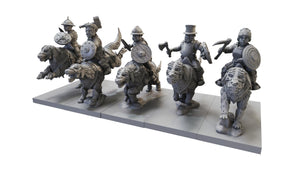 The Trained Bands are the most common troops in the Shire Army. Many so-called Braves that are drafted to the Bands are not full-time soldiers, although they are better trained than some militias found elsewhere. They typically have padded leather armour and wooden shields or bucklers, and carry a variety of weapons. Some Trained Bands are organised and equipped as light cavalry riding highly trained miniature aralez. Their primary mission is scouting and skirmishing, but on the battlefield they will harass the enemy with ranged fire and protect the army’s flanks, charging into melee if absolutely necessary.