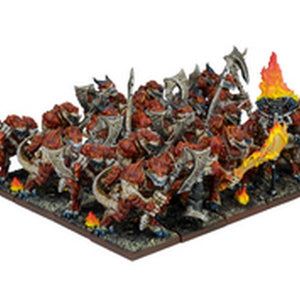 The Salamanders are cursed with the chill of Winter. Only the power of Kthorlaq and their mastery of flame keeps them alive. Salamanders' blood burns with great heat, manifesting in billowing vapours that exude from their fanged mouths, and channelling through their crude weapons, which sear and burn as well as they cut and crush