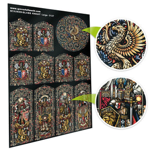 The main feature of Green Stuff World's miniature stained glass is our innovative double-printing system. This unique method ensures that the designs remain visible and striking, even without backlighting. Whether your model is displayed in a well-lit area or a darker setting, it retains its beauty and clarity. This double printing system also makes our product ideal for use on black backgrounds, where traditional transparent stained glass effects might be lost. This innovation ensures that even in less-than-ideal lighting conditions, its visual impact enhances the overall aesthetic of your project.