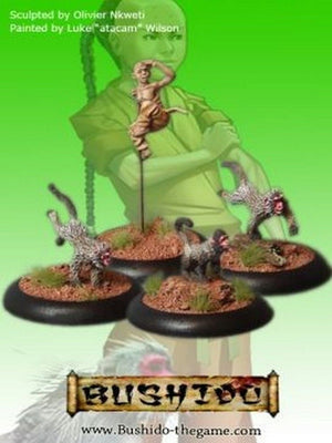 A youth, Koji has only recently been allowed to defend the honour of the Temple of Ro-Kan, having proved himself by single-handedly repelling the attacks of a notorious ninja. He fights with his befriended pack of Macaques - who he treats as family. In battle, each is equally willing to defend the other to the death.