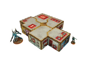 The Kokkyo-3 Commercial Hub PREPAINTED is a massive, colorful ground-floor building-a great centerpiece for your gaming table!