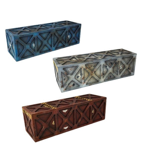 Contents of these frames may be used to make three Long Cargo Containers structures. Enclosed from all sides, they block line of sight and are easily set up, giving cover to both infantry and light vehicles.